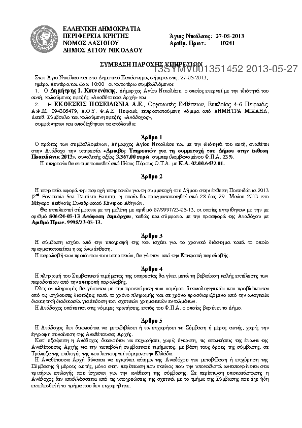 10. ΣΥΜΒΑΣΗ ΓΙΑ ΤΗ ΣΥΜΜΕΤΟΧΗ ΤΟΥ ΔΗΜΟΥ ΣΤΗΝ ΕΚΘΕΣΗ ΠΟΣΕΙΔΩΝΙΑ 2013