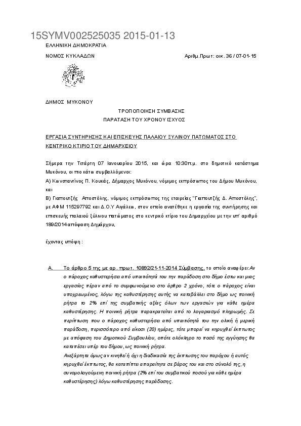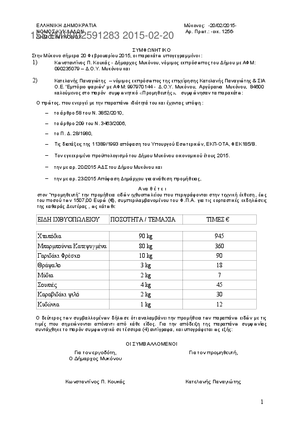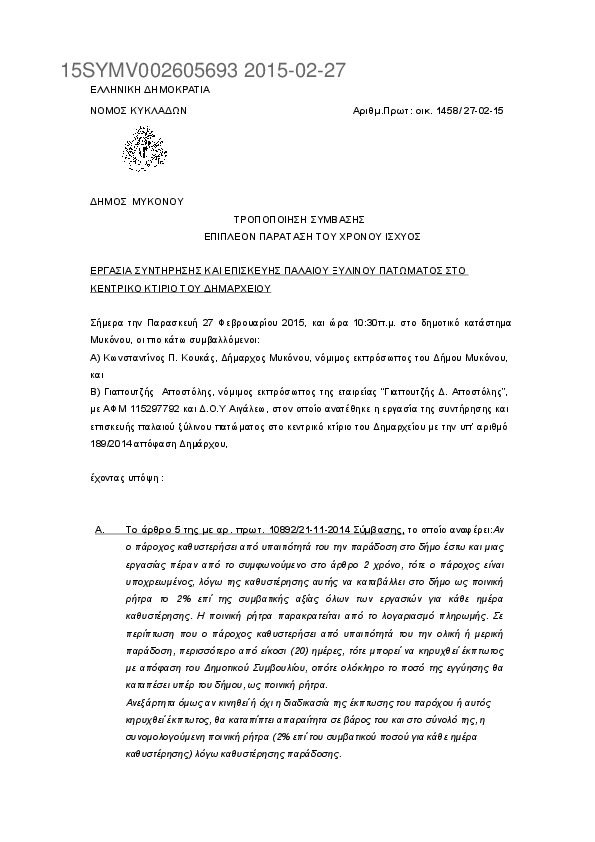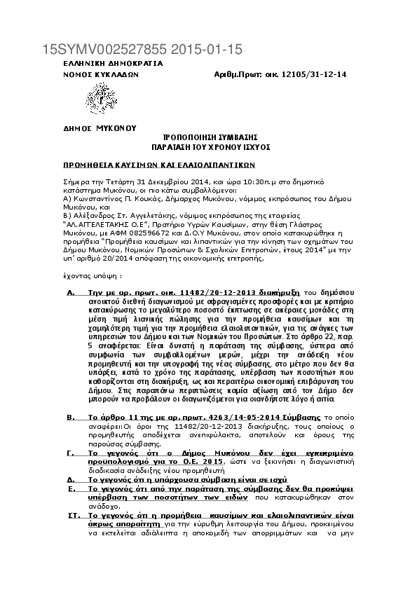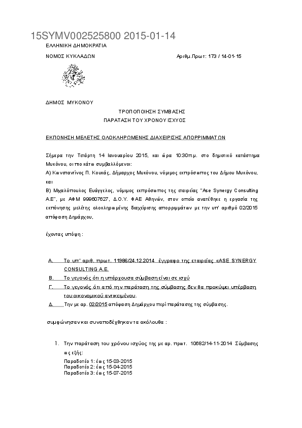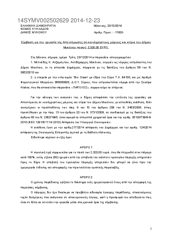 3. Σύμβαση για την εργασία της Απεντόμωσης σε κοινόχρηστους χώρους και κτίρια του Δήμου Μυκόνου ποσού