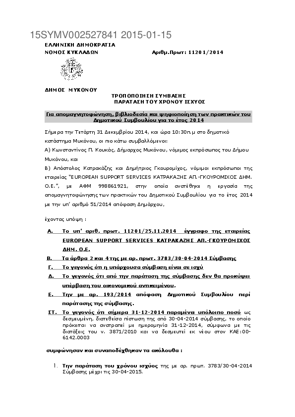 8. ΣΥΜΒΑΣΗ Για απομαγνητοφώνηση, βιβλιοδεσία και ψηφιοποίηση των πρακτικών του Δημοτικού Συμβουλίου