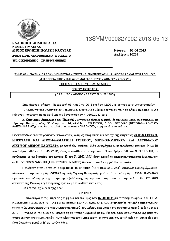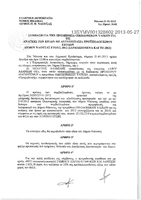 6. ΣΥΜΒΑΣΗ ΓΙΑ ΤΗΝ ΠΡΟΜΗΘΕΙΑ ΓΡΑΦΙΚΗΣ ΥΛΗΣ ΚΑΙ ΛΟΙΠΩΝ ΥΛΙΚΩΝ ΓΡΑΦΕΙΟΥ ΓΙΑ ΤΙΣ ΑΝΑΓΚΕΣ ΤΟΥ ΔΗΜΟΥ ΝΑΟΥΣΑ