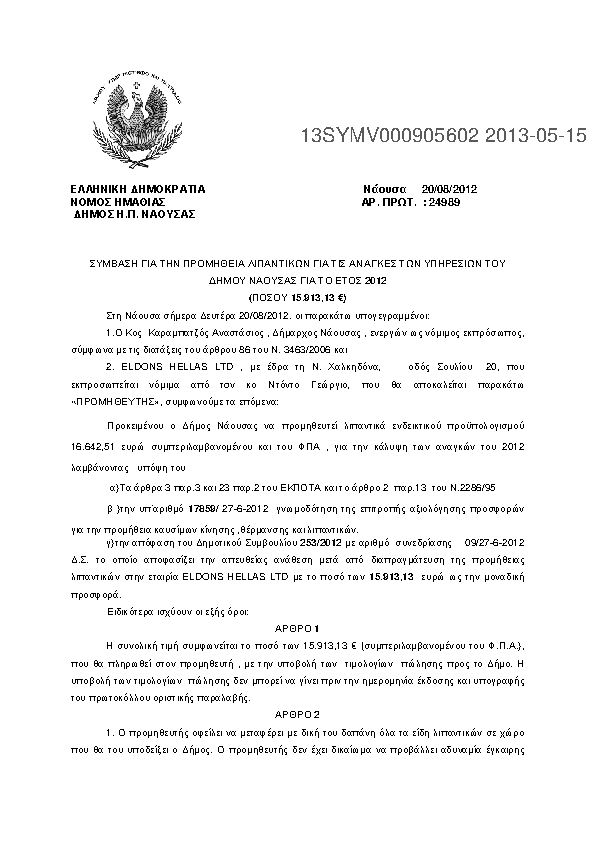 8. ΠΡΟΜΗΘΕΙΑ ΛΙΠΑΝΤΙΚΩΝ ΓΙΑ ΤΙΣ ΑΝΑΓΚΕΣ ΤΩΝ ΥΠΗΡΕΣΙΩΝ ΤΟΥ Δ.ΝΑΟΥΣΑΣ ΓΙΑ ΤΟ ΕΤΟΣ 2012