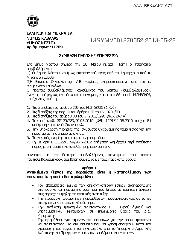 5. ΣΥΜΒΑΣΗ ΠΑΡΟΧΗΣ ΥΠΗΡΕΣΙΩΝ ΚΑΤΑΠΟΛΕΜΗΣΗΣ ΚΟΥΝΟΥΠΙΩΝ
