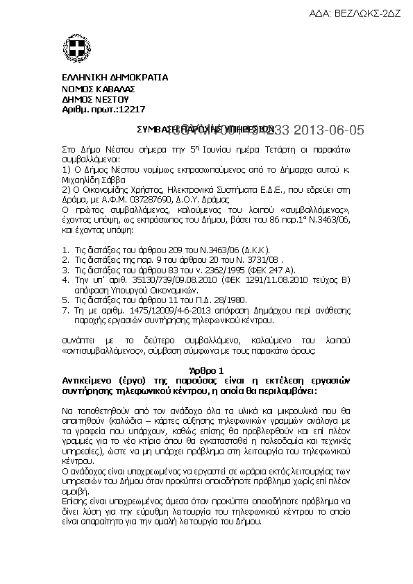 3. ΣΥΜΒΑΣΗ ΠΑΡΟΧΗΣ ΥΠΗΡΕΣΙΩΝ ΣΥΝΤΗΡΗΣΗΣ ΤΗΛΕΦΩΝΙΚΟΥ ΚΕΝΤΡΟΥ