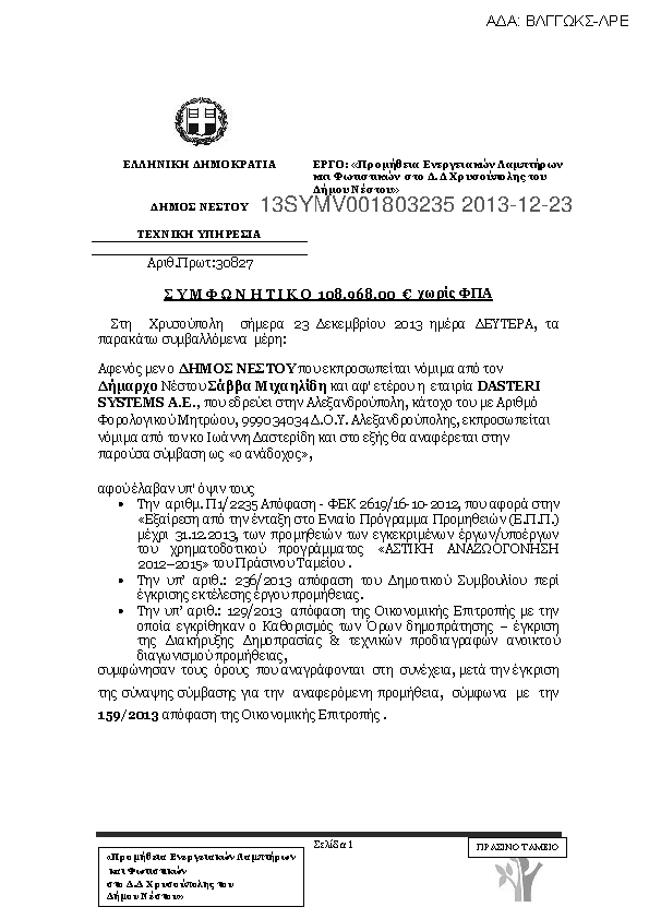 4. «Προμήθεια Ενεργειακών Λαμπτήρων και Φωτιστικών στο Δ.Δ Χρυσούπολης του Δήμου Νέστου»