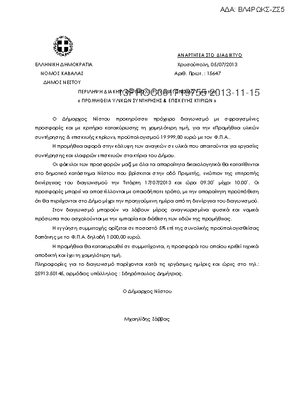 1. ΠΕΡΙΛΗΨΗ ΔΙΑΚΗΡΥΞΗΣ ΑΝΟΙΧΤΗΣ ΔΗΜΟΠΡΑΣΙΑΣ ΓΙΑ ΕΠΙΛΟΓΗ ΑΝΑΔΟΧΟΥ ΚΑΤΑΣΚΕΥΗΣ ΕΡΓΟΥ «ΑΝΑΠΛΑΣΗ ΠΑΡΑΛΙΑΚΗΣ ΖΩΝΗΣ ΑΜΜΟΓΛΩΣΣΑΣ ΚΕΡΑΜΩΤΗΣ»