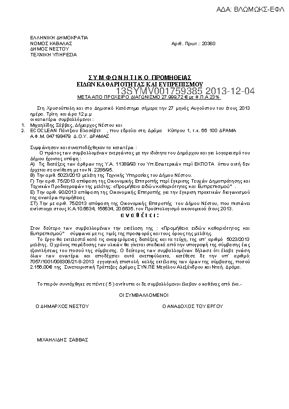5. Σ Υ Μ Φ Ω Ν Η Τ Ι Κ Ο ΠΡΟΜΗΘΕΙΑΣ ΕΙΔΩΝ ΚΑΘΑΡΙΟΤΗΤΑΣ ΚΑΙ ΕΥΠΡΕΠΙΣΜΟΥ
