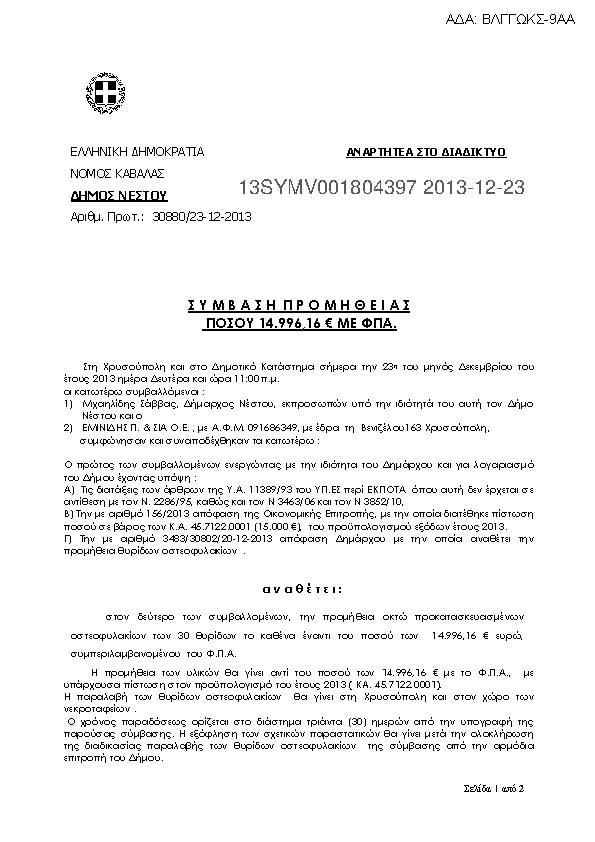 Αναζήτηση σε προκηρύξεις και συμβάσεις για: