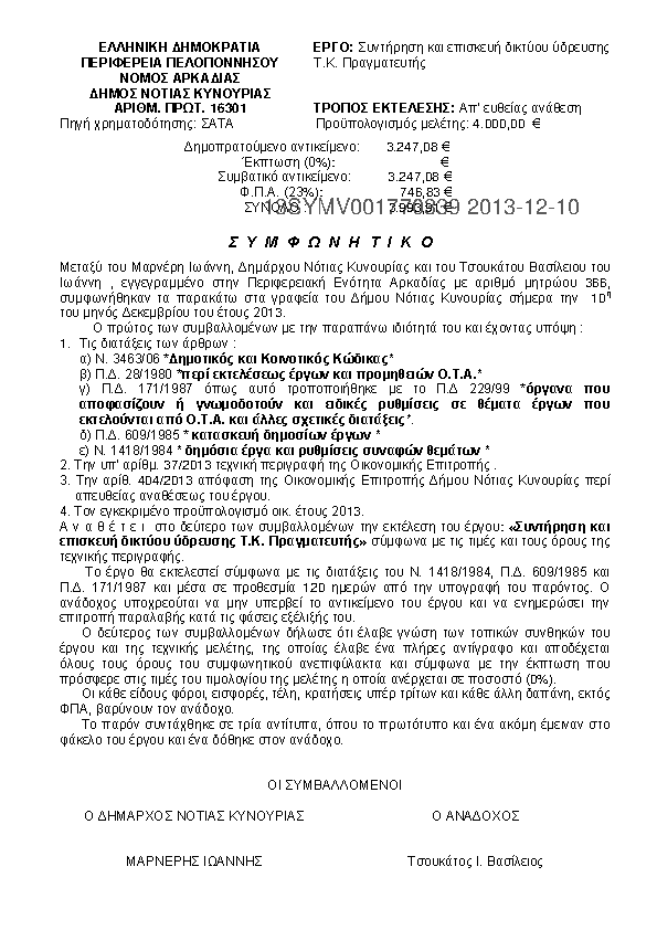10. Σύμβαση συντήρησης και επισκευής δικτύου ύδρευσης Τ.Κ. Πραγματευτής