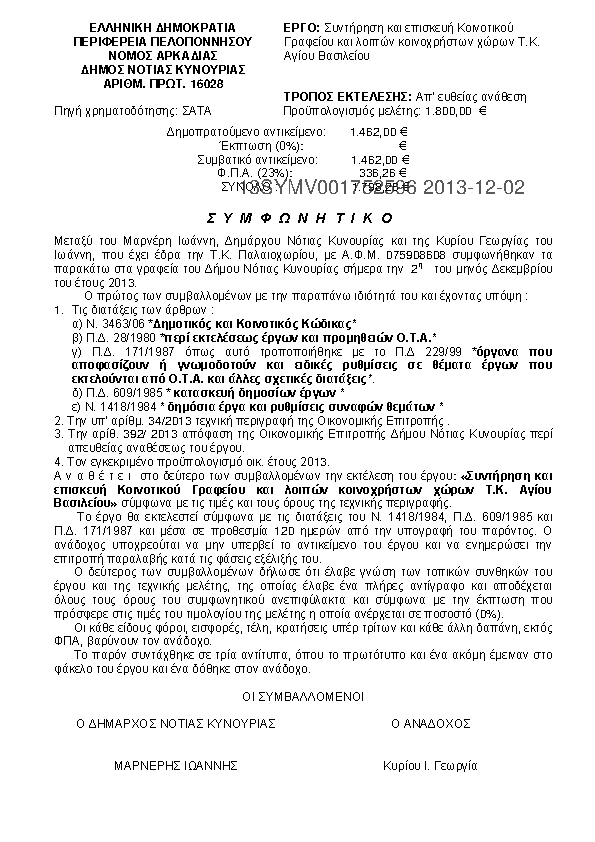 5. Σύμβαση συντήρησης και επισκευής Κοινοτικού Γραφείου και λοιπών κοινόχρηστων χώρων Τ.Κ. Αγ. Βασιλείο