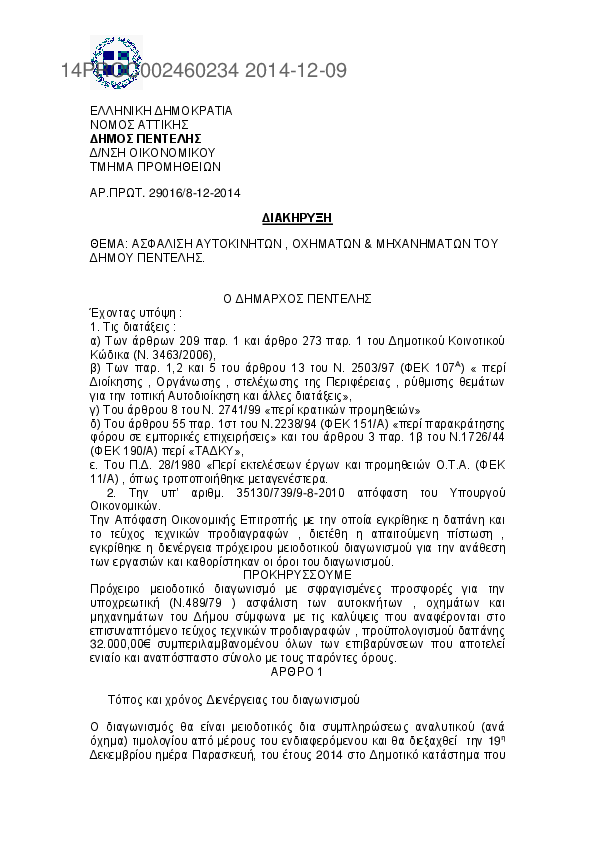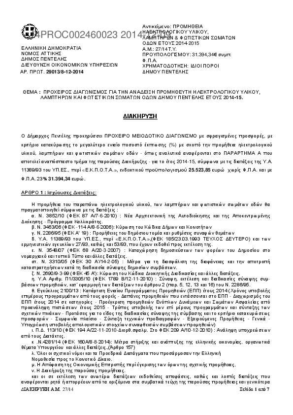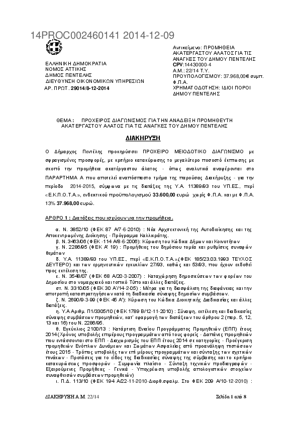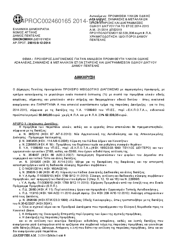 Αναζήτηση σε προκηρύξεις και συμβάσεις για: