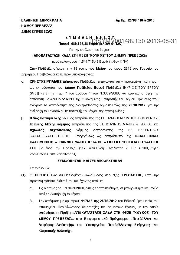 9. ΑΠΟΚΑΤΑΣΤΑΣΗ ΧΑΔΑ ΣΤΗ ΘΕΣΗ ¨ΚΟΥΚΟΣ¨ ΤΟΥ ΔΗΜΟΥ ΠΡΕΒΕΖΑΣ