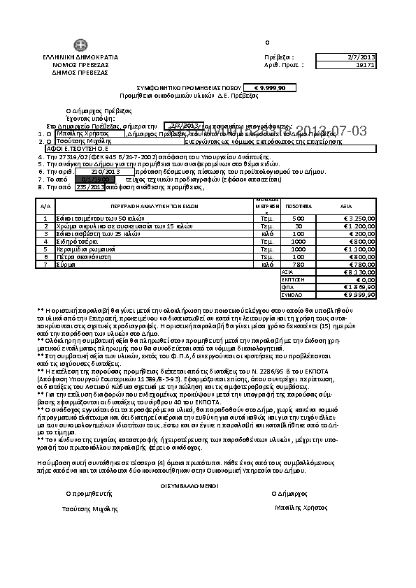 3. ΠΡΟΜΗΘΕΙΑ ΟΙΚΟΔΟΜΙΚΩΝ ΥΛΙΚΩΝ Δ.Ε ΠΡΕΒΕΖΑΣ