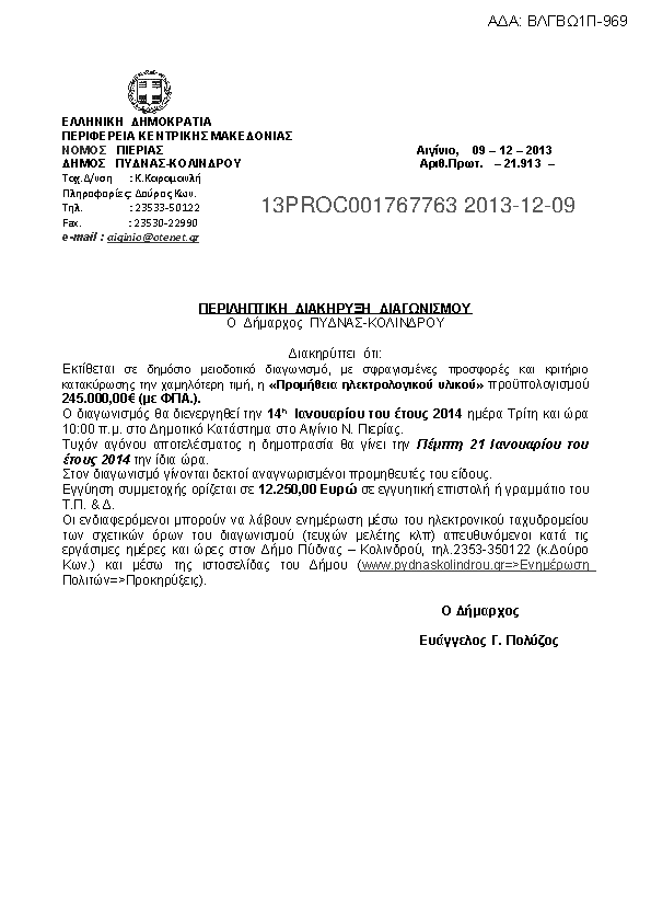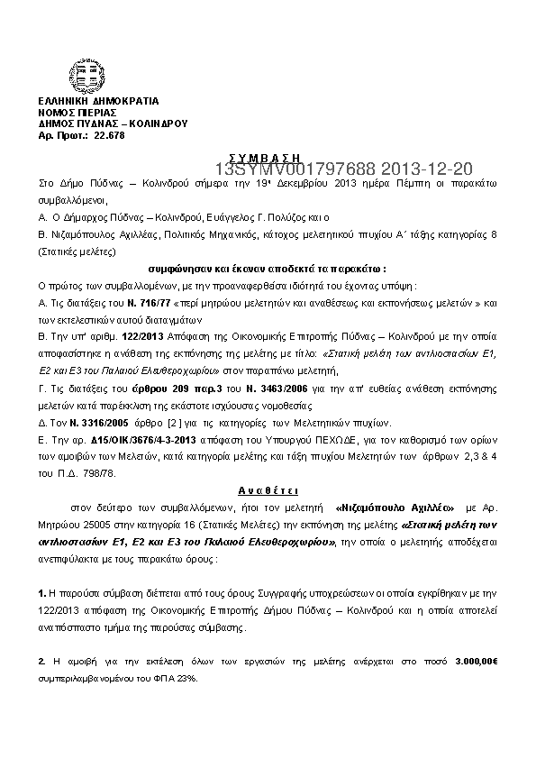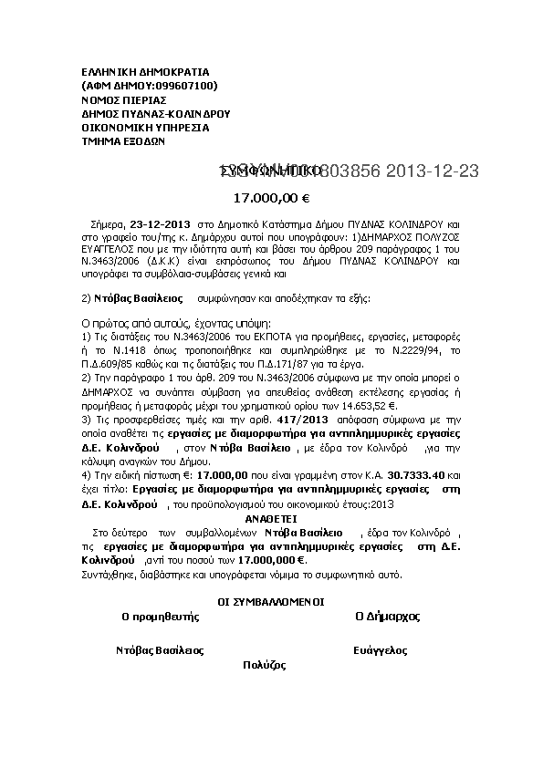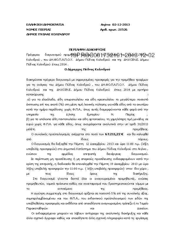 3. ΠΡΟΜΗΘΕΙΑ ΤΡΟΦΙΜΩΝ ΓΙΑ ΤΟ ΔΗΜΟ ΠΥΔΝΑΣ ΚΟΛΙΝΔΡΟΥ ΤΟ ΔΗΦΟΠΑΠΟΥ ΚΑΙ ΤΗ ΔΗΚΟΙΝΕ ΕΤΟΥΣ 2014