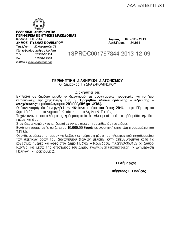 Αναζήτηση σε προκηρύξεις και συμβάσεις για: