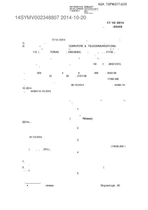 3. ΣΥΜΒΑΣΗ ΑΝΑΒΑΘΜΗΣΗΣ ΕΚΔΟΣΕΩΝ ΕΦΑΡΜΟΓΩΝ ΠΛΗΡΟΦΟΡΙΚΗΣ (ΕΤΗΣΙΕΣ RELEΑSE)