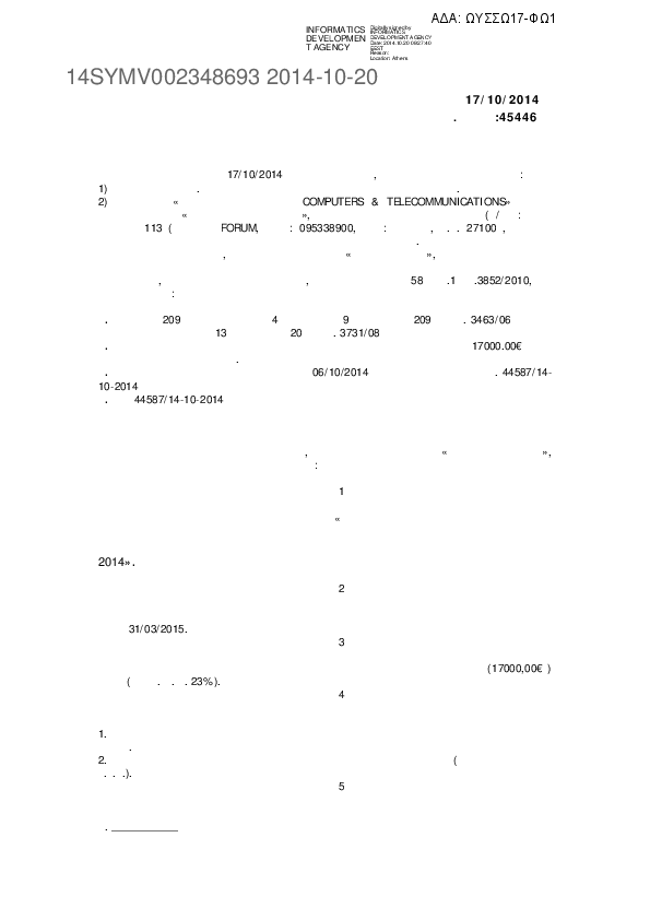 2. ΣΥΜΒΑΣΗ ΓΙΑ ΕΡΓΑΣΙΕΣ ΣΥΝΤΗΡΗΣΗΣ ΚΑΙ ΥΠΟΣΤΗΡΙΞΗΣ ΕΞΟΠΛΙΣΜΟΥ ΚΑΙ ΛΕΙΤΟΥΡΓΕΙΑΣ ΛΟΓΙΣΜΙΚΟΥ ΚΑΙ ΠΛΗΡΟΦΟΡΙ