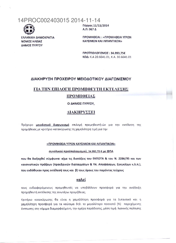 Αναζήτηση σε προκηρύξεις και συμβάσεις για: