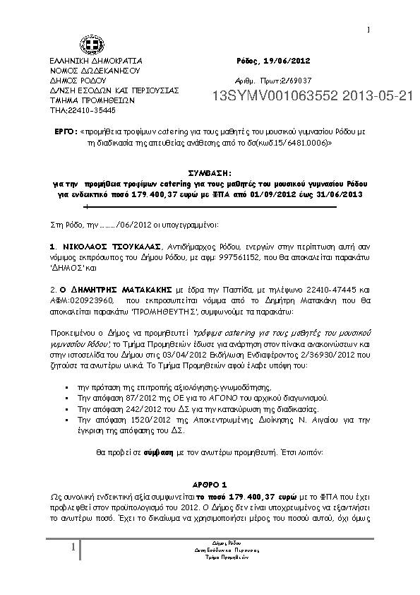 8. ΠΡΟΜΗΘΕΙΑ ΤΡΟΦΙΜΩΝ CATERING ΓΙΑ ΤΟΥΣ ΜΑΘΗΤΕΣ ΤΟΥ ΜΟΥΣΙΚΟΥ ΓΥΜΝΑΣΙΟΥ ΡΟΔΟΥ