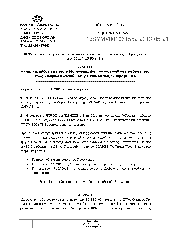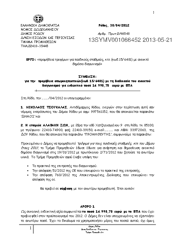 Αναζήτηση σε προκηρύξεις και συμβάσεις για:
