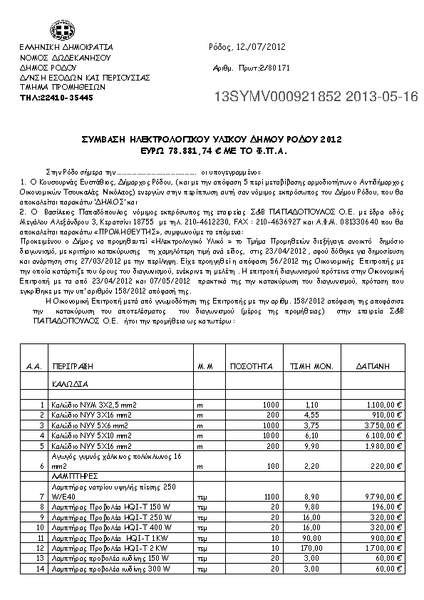 1. ΠΡΟΜΗΘΕΙΑ ΗΛΕΚΤΡΟΛΟΓΙΚΟΥ ΥΛΙΚΟΥ