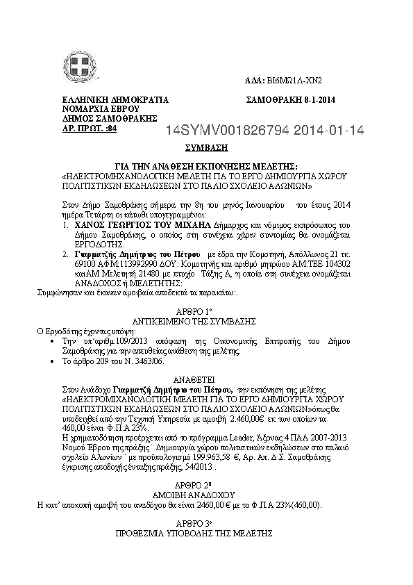 9. ΗΛΕΚΤΡΟΜΗΧΑΝΟΛΟΓΙΚΗ ΜΕΛΕΤΗ ΓΙΑ ΤΟ ΕΡΓΟ ΔΗΜΙΟΥΡΓΙΑ ΧΩΡΟΥ ΠΟΛΙΤΙΣΤΙΚΩΝ ΕΚΔΗΛΩΣΕΩΝ ΣΤΟ ΠΑΛΙΟ ΣΧΟΛΕΙΟ ΑΛ