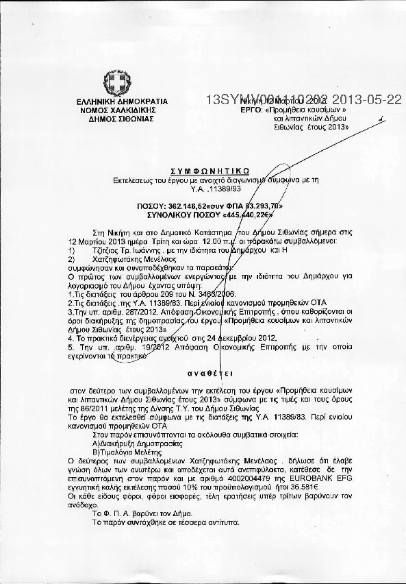 1. ΠΡΟΜΗΘΕΙΑ ΚΑΥΣΙΜΩΝ ΚΑΙ ΛΙΠΑΝΤΙΚΩΝ ΔΗΜΟΥ ΣΙΘΩΝΙΑΣ