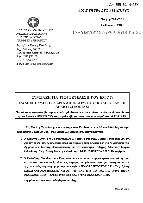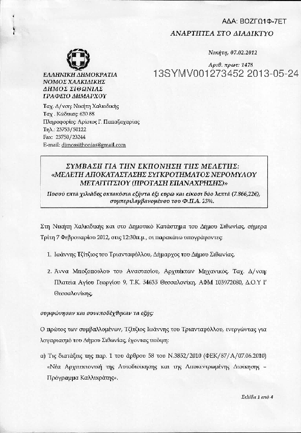 7. ΣΥΜΠΛΗΡΩΜΑΤΙΚΑ ΕΡΓΑ ΑΠΟΧΕΤΕΥΣΗΣ ΟΙΚΙΣΜΟΥ ΣΑΡΤΗΣ ΔΗΜΟΥ ΣΙΘΩΝΙΑΣ
