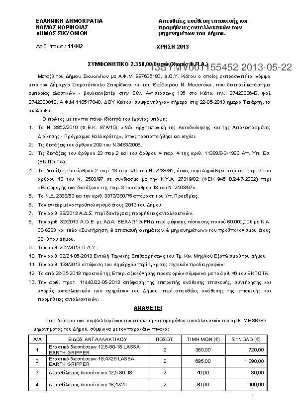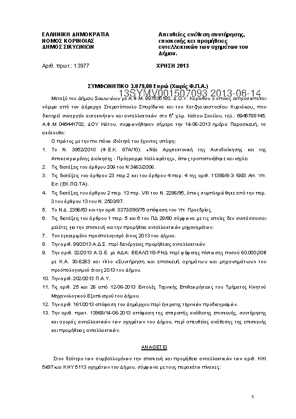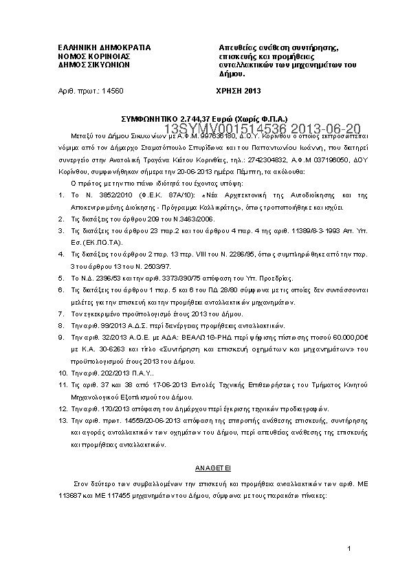 3. Απευθείας ανάθεση συντήρησης, επισκευής και προμήθειας ανταλλακτικών των μηχανημάτων του Δήμου.