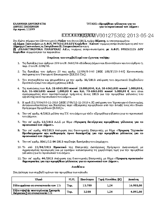 10. "Προμήθεια γάλακτος για το προσωπικό του Δήμου"