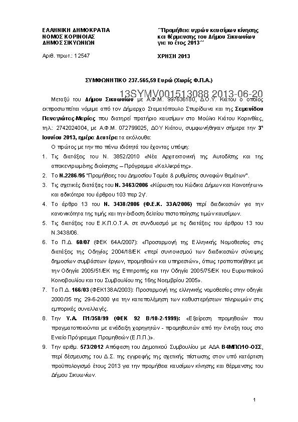 4. Προμήθεια υγρών καυσίμων κίνησης και θέρμανσης του Δήμου Σικυωνίων για το έτος 2013