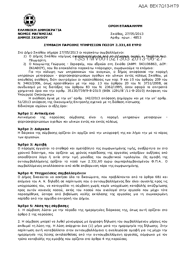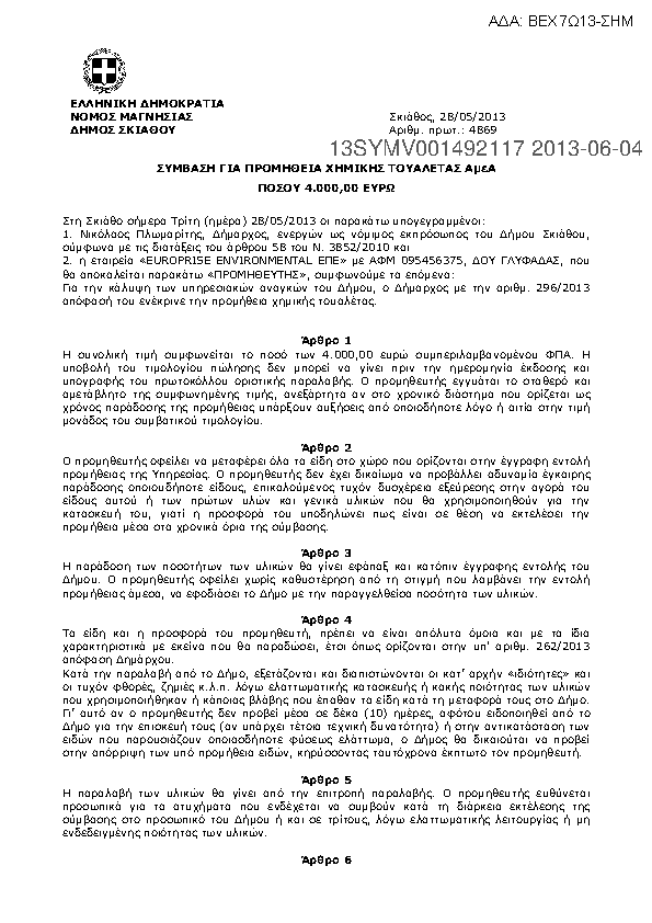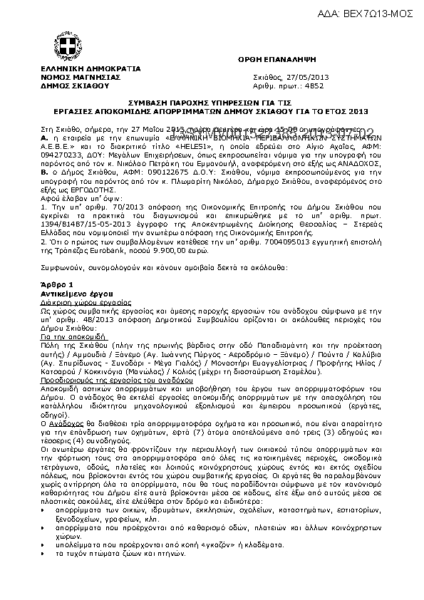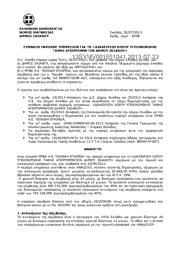 6. ΣΥΜΒΑΣΗ ΠΑΡΟΧΗΣ ΥΠΗΡΕΣΙΩΝ ΓΙΑ ΤΗ «ΔΙΑΧΕΙΡΙΣΗ ΧΩΡΟΥ ΥΓΕΙΟΝΟΜΙΚΗΣ ΤΑΦΗΣ ΑΠΟΡΡΙΜΜΑΤΩΝ ΔΗΜΟΥ ΣΚΙΑΘΟΥ»