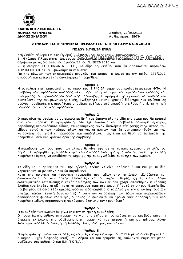 1. Σύμβαση για την προμήθεια λογισμικού SINGULAR