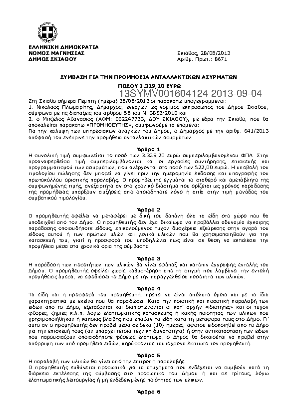 3. Σύμβαση για την προμήθεια ανταλλακτικών ασυρμάτων