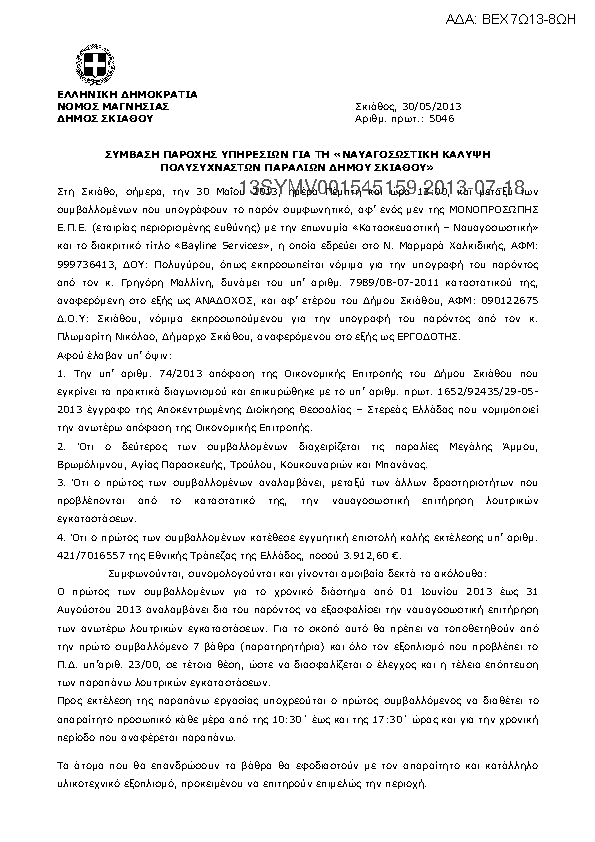 7. ΣΥΜΒΑΣΗ ΓΙΑ ΤΗ ΝΑΥΑΓΟΣΩΣΤΙΚΗ ΚΑΛΥΨΗ ΠΟΛΥΣΥΧΝΑΣΤΩΝ ΠΑΡΑΛΙΩΝ ΔΗΜΟΥ ΣΚΙΑΘΟΥ