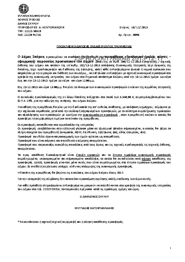 5. Σύμβαση Προμήθειας Εξοπλισμού Παιδων Χαρων και Αστικου Εξοπλισμου Δήμου Σκύρου