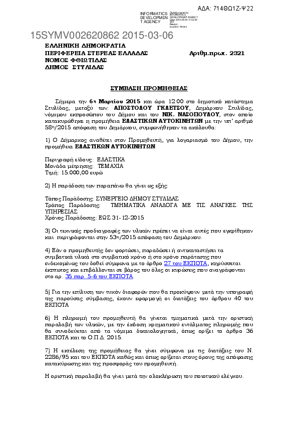 7. ΣΥΜΒΑΣΗ ΓΙΑ ΤΗΝ "ΕΞΑΓΩΓΗ, ΜΕΤΑΦΟΡΑ, ΕΠΙΣΚΕΥΗ ΚΑΙ ΤΟΠΟΘΕΤΗΣΗ ΑΝΤΛΗΤΙΚΩΝ ΣΥΓΚΡΟΤΗΜΑΤΩΝ ΛΟΓΩ ΒΛΑΒΩΝ"