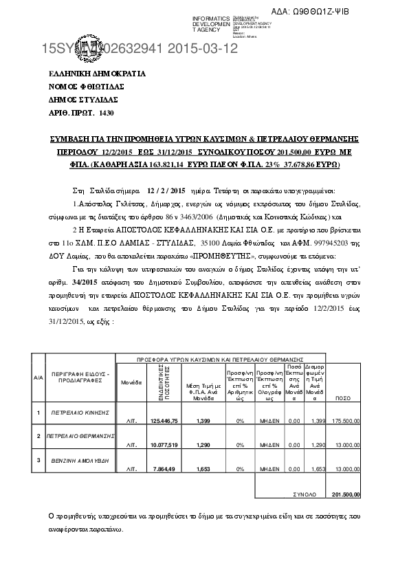 10. ΠΡΟΜΗΘΕΙΑ ΥΓΡΩΝ ΚΑΥΣΙΜΩΝ ΚΑΙ ΠΕΤΡΕΛΑΙΟΥ ΘΕΡΜΑΝΣΗΣ ΠΕΡΙΟΔΟΥ 12/2/2015 ΕΩΣ 31/12/2015