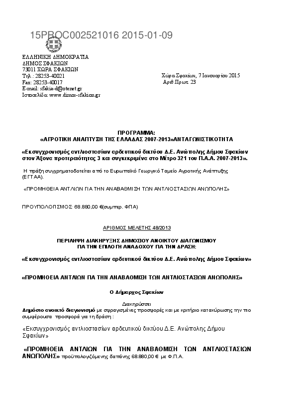 Αναζήτηση σε προκηρύξεις και συμβάσεις για: