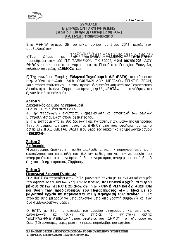 10. ΣΥΜΒΑΣΗ ΜΕ ΤΑ ΕΛΤΑ (ΣΥΜΒΑΣΗ ΕΙΣΠΡΑΞΕΩΝ ΤΑΧΥΠΛΗΡΩΜΗΣ)