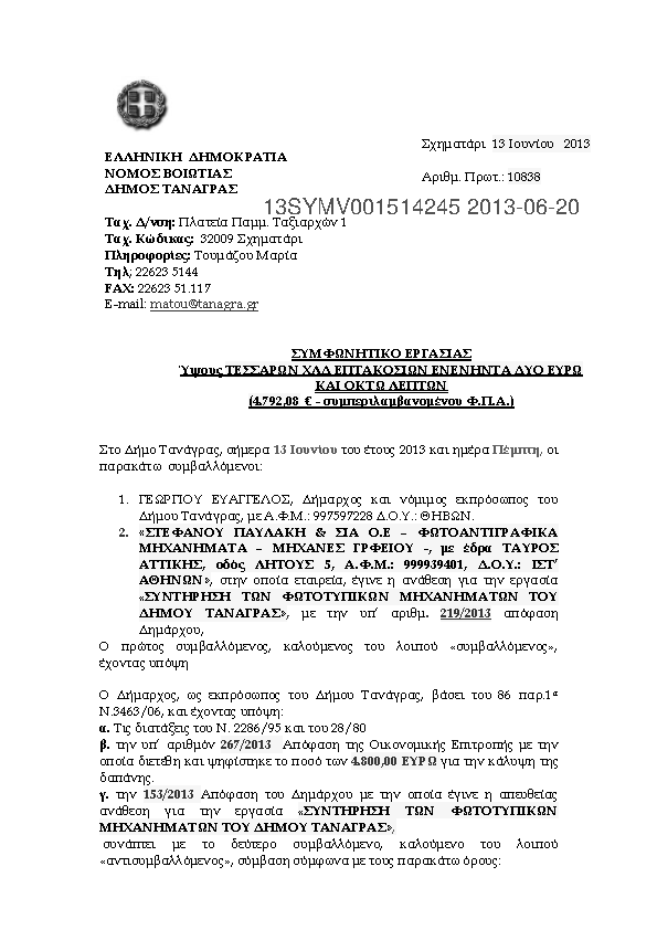 4. ΕΡΓΑΣΙΕΣ ΓΙΑ ΤΗΝ ΣΥΝΤΗΡΗΣΗ ΤΩΝ ΦΩΤΟΤΥΠΙΚΩΝ ΜΗΧΑΝΗΜΑΤΩΝ ΤΟΥ ΔΗΜΟΥ ΤΑΝΑΓΡΑΣ