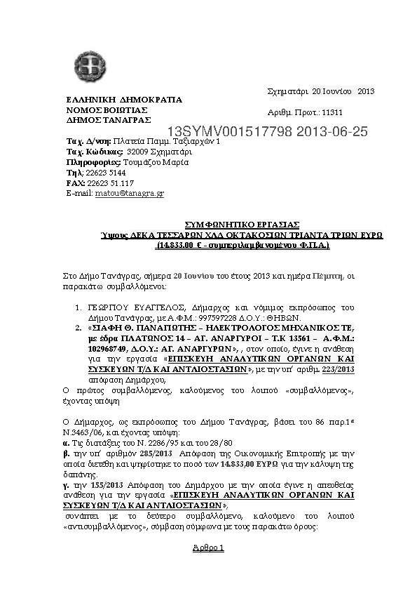 5. ΕΡΓΑΣΙΑ ΓΙΑ ΤΗΝ ΕΠΙΣΚΕΥΗ ΑΝΑΛΥΤΙΚΩΝ ΟΡΓΑΝΩΝ ΚΑΙ ΣΥΣΚΕΥΩΝ Τ/Δ ΚΑΙ ΑΝΤΛΙΟΣΤΑΣΙΩΝ ΤΟΥ ΔΗΜΟΥ ΤΑΝΑΓΡΑΣ