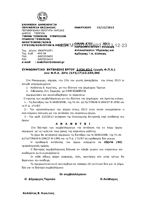 6. Επισκευή Αντλιοστασίων Ύδρευσης και Άρδευσης Τ.Κ. Τεμπών