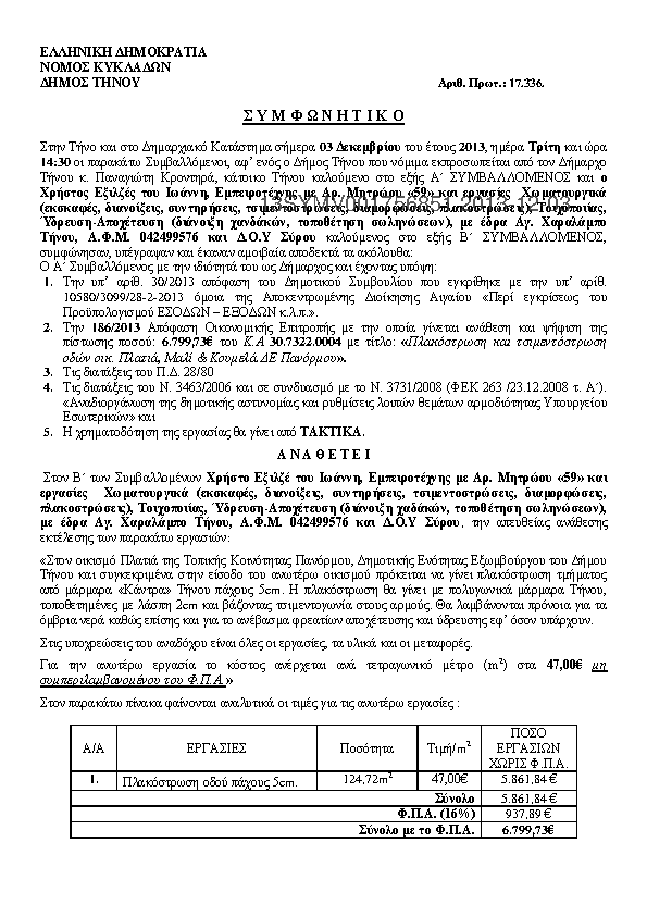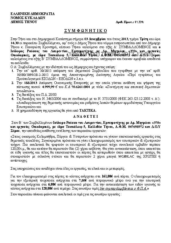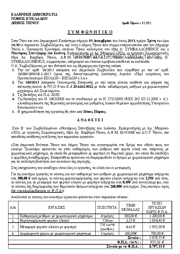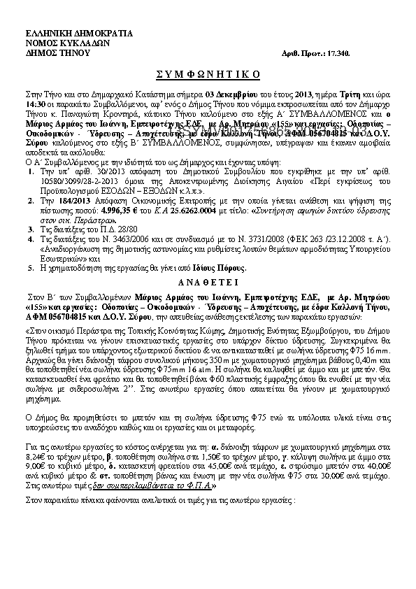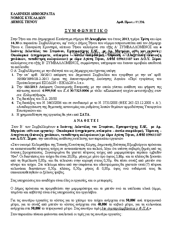 5. Συντήρηση αγωγών και φρεατίων ομβρίων Δ.Ε. Τήνου