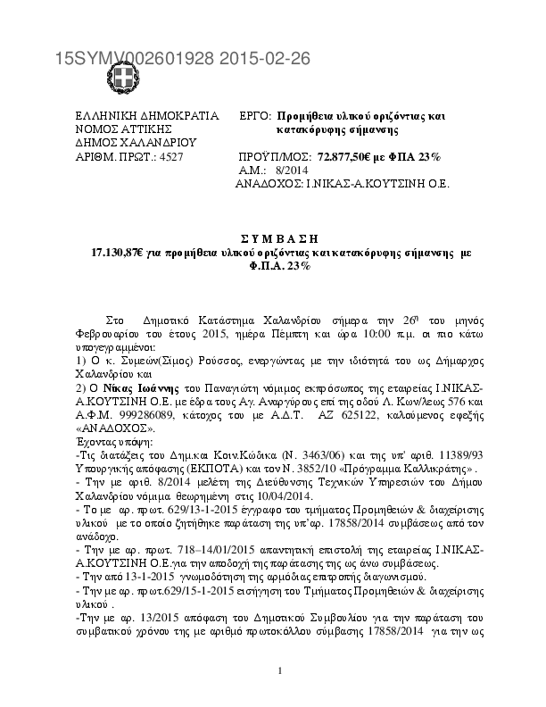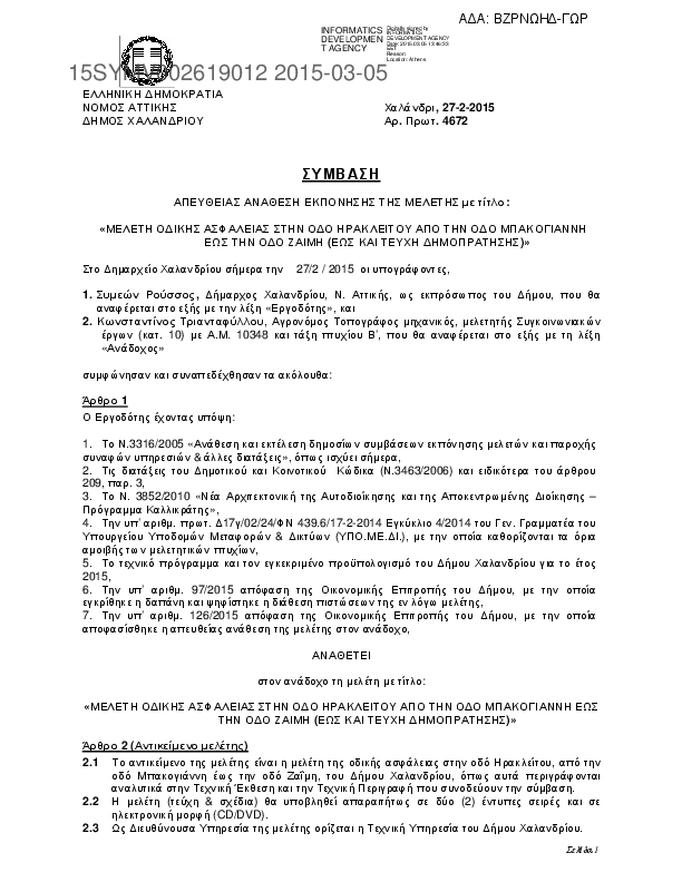 1. ΣΥΜΒΑΣΗ ΚΑΤΑΣΚΕΥΗΣ ΕΡΓΟΥ:ΣΥΝΤΗΡΗΣΗ ΔΙΦΟΡΩΝ ΠΑΙΔΙΚΩΝ ΧΑΡΩΝ ΚΑΙ ΚΟΙΝΟΧΡΗΣΤΩΝ ΧΩΡΩΝ ΣΤΟ ΔΗΜΟ ΧΑΛΑΝΔΡΙΟΥ