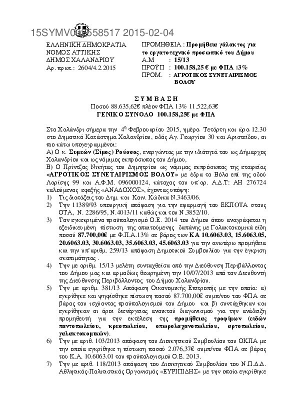 2. ΣΥΜΒΑΣΗ ΓΙΑ ΤΗΝ ΠΡΟΜΗΘΕΙΑ ΓΑΛΑΚΤΟΣ ΓΙΑ ΤΟ ΕΡΓΑΤΟΤΕΧΝΙΚΟ ΠΡΟΣΩΠΙΚΟ ΤΟΥ Δ. ΧΑΛΑΝΔΡΙΟΥ