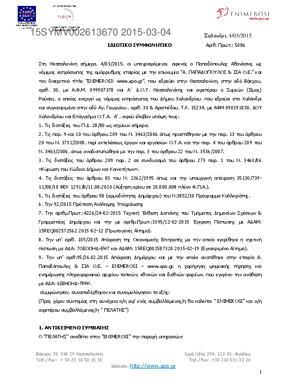 8. ΣΥΜΒΑΣΗ ΓΙΑ ΨΗΦΙΑΚΗ ΤΗΡΗΣΗ & ΕΝΗΜΕΡΩΣΗ ΠΛΗΡΟΦΟΡΙΑΚΟΥ ΑΡΧΕΙΟΥ ΤΟΠΙΚΩΝ, ΕΘΝΙΚΩΝ & ΔΙΕΘΝΩΝ ΦΟΡΕΩ