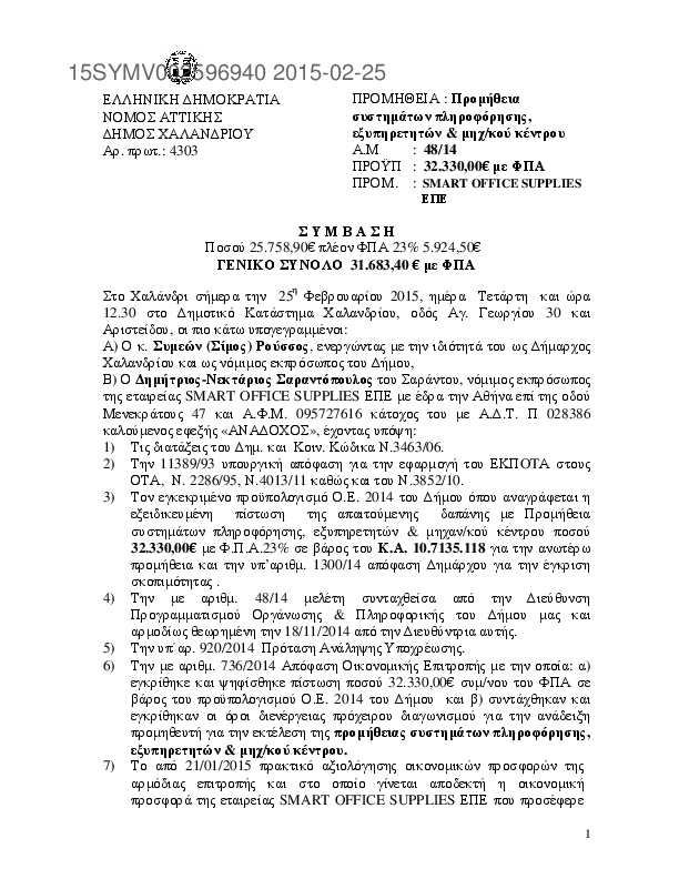 3. ΣΥΜΒΑΣΗ ΓΙΑ ΠΡΟΜΗΘΕΙΑ ΣΥΣΤΗΜΑΤΩΝ ΠΛΗΡΟΦΟΡΗΣΗΣ, ΕΞΥΠΗΡΕΤΗΤΩΝ & ΜΗΧ/ΚΟΥ ΚΕΝΤΡΟΥ