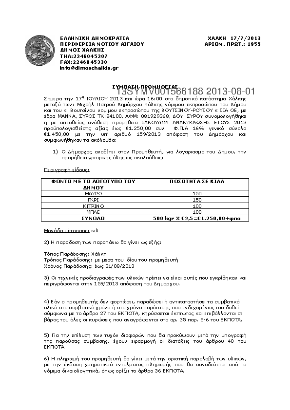 1. Απευθείας ανάθεση για την προμήθεια ΤΗΛΕΦΩΝΙΚΟΥ ΚΕΝΤΡΟΥ ΔΙΟΙΚΗΤΙΚΩΝ ΥΠΗΡΕΣΙΩΝ