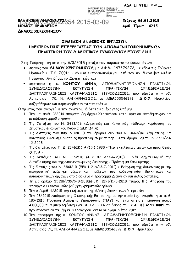 8. ΑΝΑΘΕΣΗ ΕΡΓΑΣΙΩΝ ΗΛΕΚΤΡΟΝΙΚΗΣ ΕΠΕΞΕΡΓΑΣΙΑΣ ΤΩΝ ΑΠΟΜΑΓΝΗΤΟΦΩΝΗΜΕΝΩΝ ΠΡΑΚΤΙΚΩΝ Δ.Σ ΔΗΜΟΥ ΧΕΡΣ/ΣΟΥ