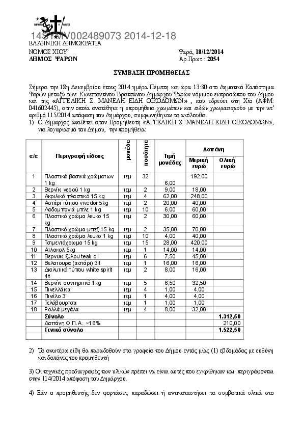7. Προμήθεια χρωμάτων και ειδών χρωματισμού